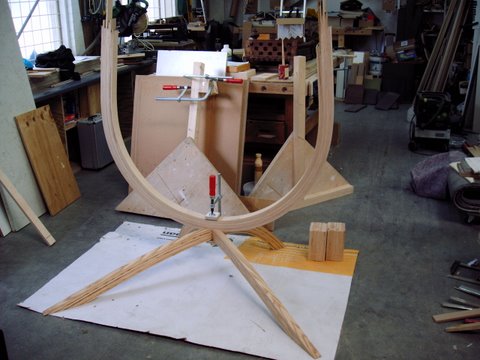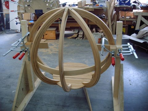 Er is nu echter een voet en ophanging nodig waar de stoel in komt.